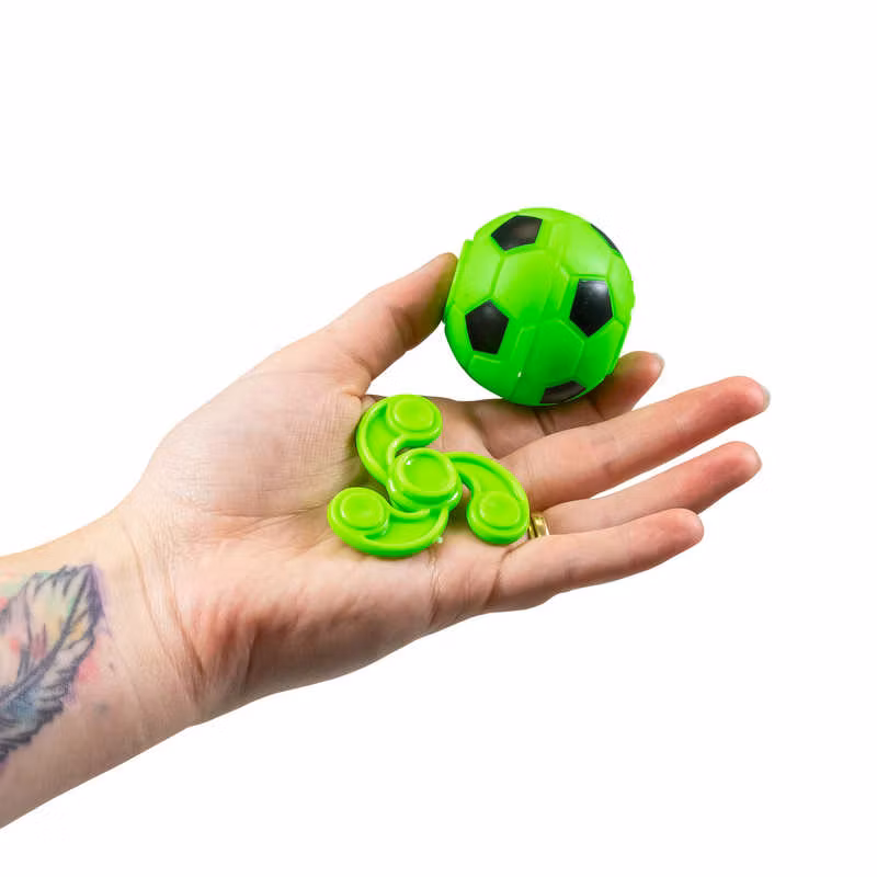 - Fidget Slug, Pop and Hop Spinner, Fidget Track, Fidget Spinner, Fidget Noodles, Mini Muddle Puzzle, Fidget Pop Tubes, Hypno Swirl Fidget Spinner, Fotbollsspinner, Squishy-djur, Spikbollar och mycket mer!
