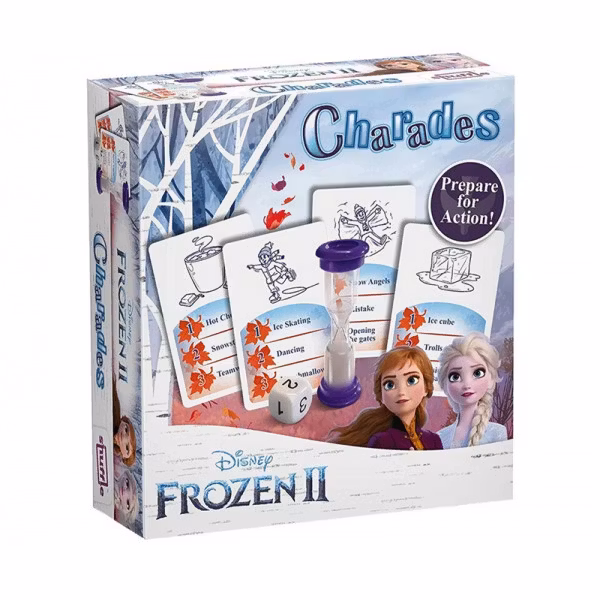 Ett "Gissa med Grimas" spel, där alla kan vara med. Här kan allas talanger bli testade, när man t.ex. ska visa isdans, föreställa en snöstorm eller en enhörning, eftersom allt ska föregå utan att säga något. Det finns bilder på spelkorten, så alla kan vara med och förstå. Gissa svaret, innan sanden i timglaset rinner ut.